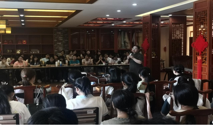 为了传承和弘扬中华优秀传统文化,提高同学们的审美情趣和文化素养,永利总站ylzz55国际中文教育硕士点行业导师——南宁市芳君默茶工作室创始人、国家一级高级茶艺技师、国家一级高级评茶师刘芳教授于2024年5月31日下午在学院中华才艺馆作了“喫茶去——泡好生活里的一杯茶”的讲座,汉语国际教育专业学生到现场聆听。