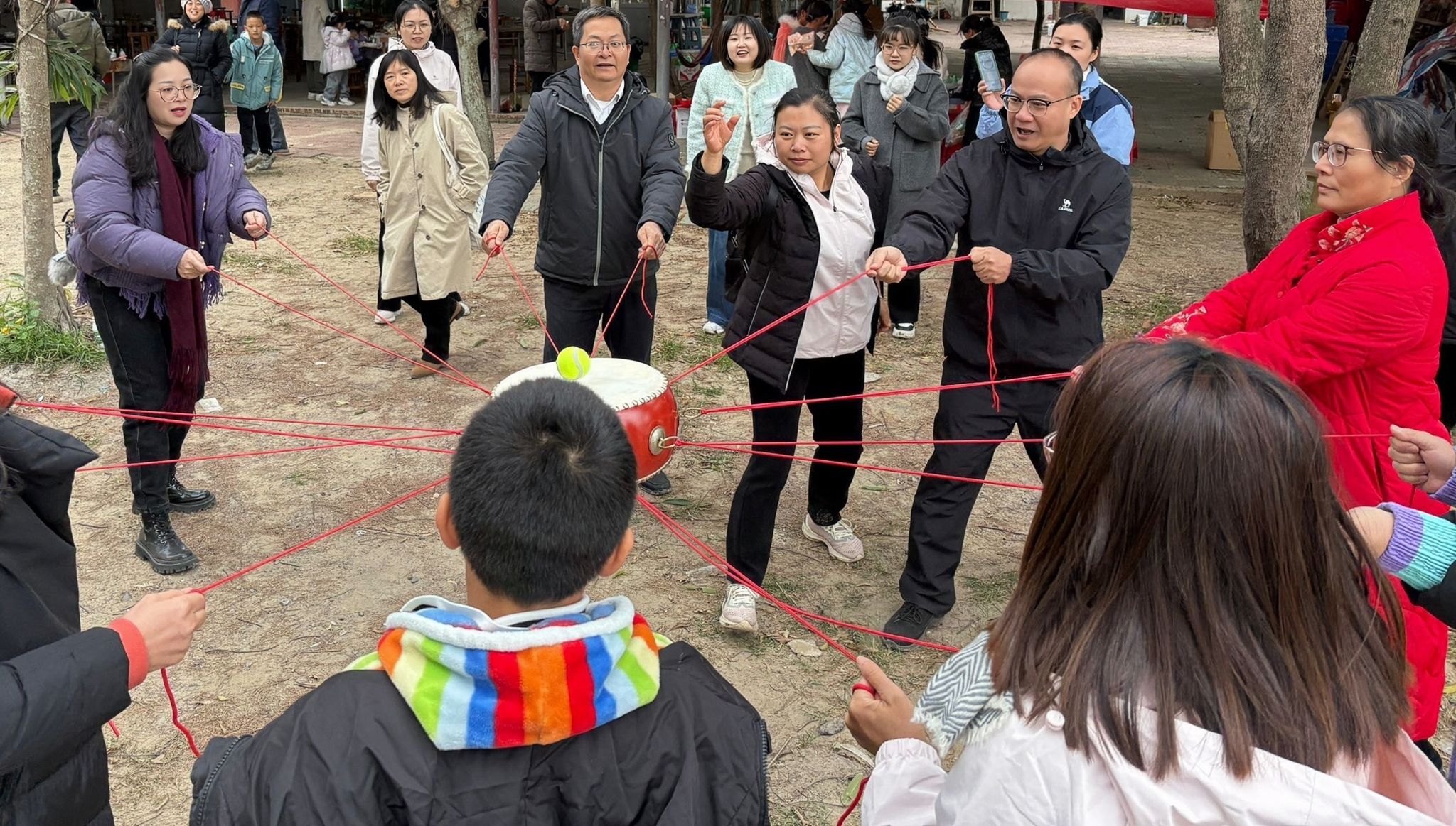 教职工们进行“同心击鼓”