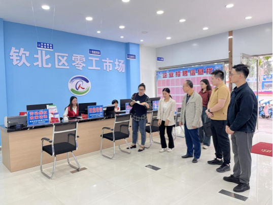 钦北区组织部人才股股长黄鹏、皇马人力资源公司总经理陈胜民向梁伟杰书记一行详细了解钦北区零工市场就业岗位供求信息、就业求职登记、企业招聘信息发布、人才就业培训等情况,双方围绕钦北区零工市场的功能定位、职能作用、平台信息共享、应届大学生岗位需求等问题进行了深入交流。